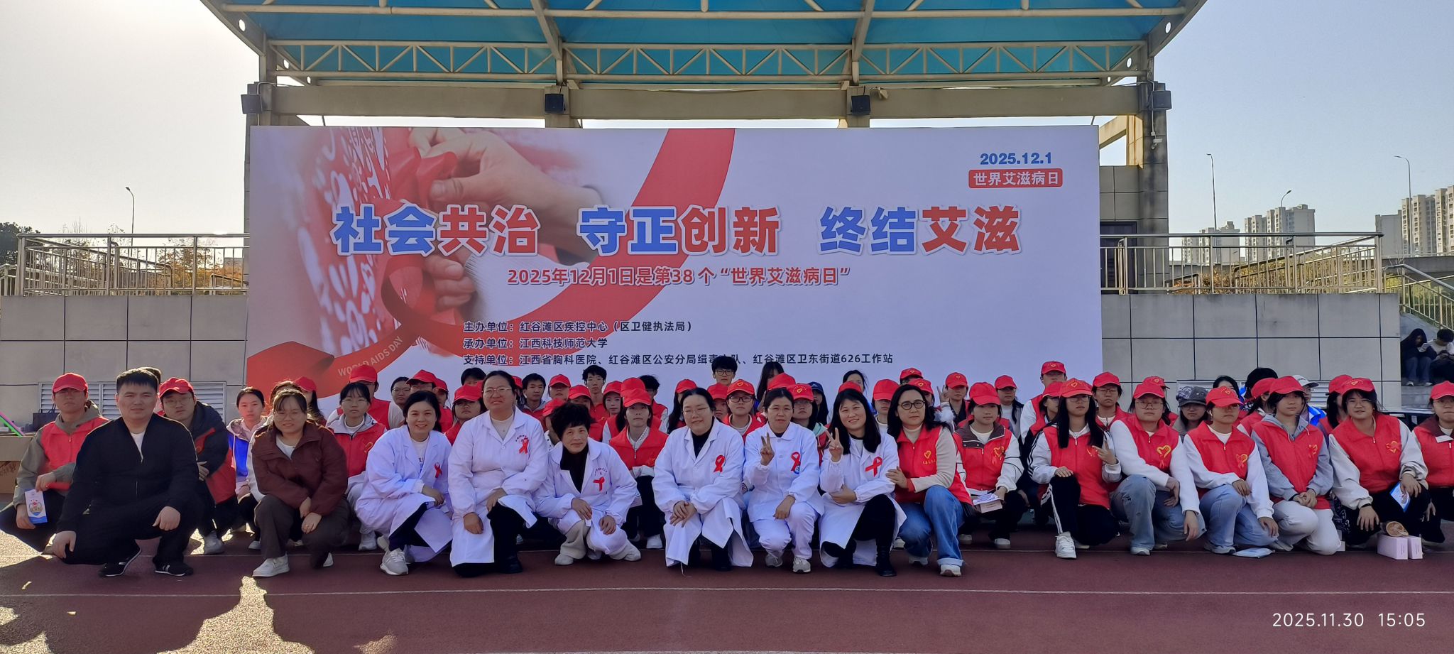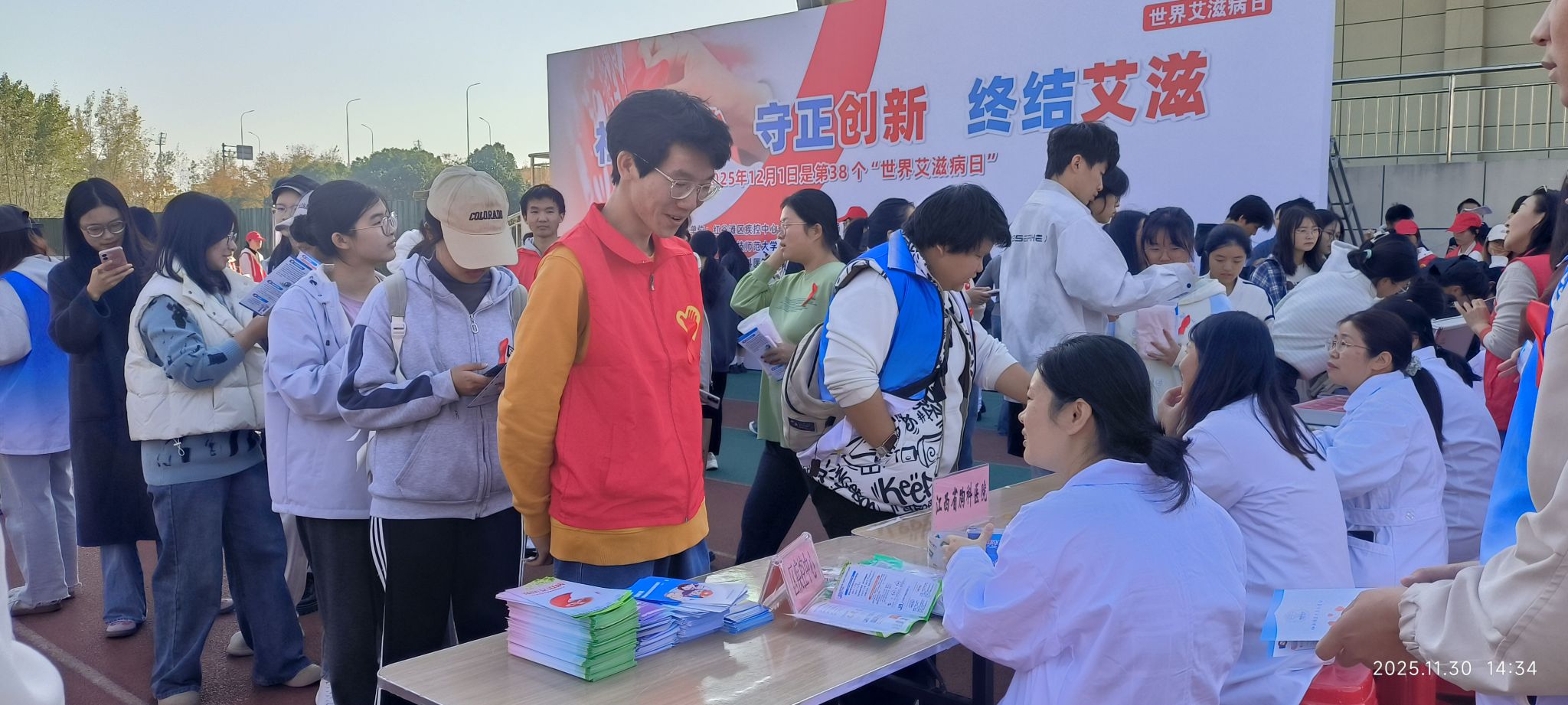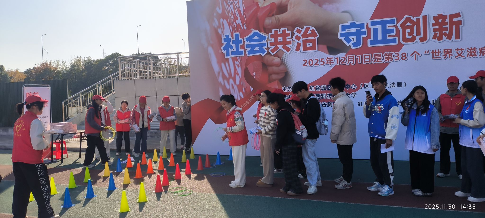 江西科技师范大学:我校成功举办“社会共治,守正创新,终结艾滋”世界艾滋病日主题宣传活动发表时间:2025-12-21 07:50 2025年12月1日是第38个世界艾滋病日,今年宣传主题是"社会共治,守正创新,终结艾滋"的主题,为增强师生对艾滋病的科学认识,提升自我防护意识与能力,我校于11月30日下午携手红谷滩疾控中心及其他相关单位,在红角洲校区西区运动场共同开展艾滋病日主题宣传活动。本次活动由红谷滩疾控中心主办,江西科技师范大学承办,江西省胸科医院、红谷滩区公安分局缉毒大队、红谷滩区卫东街道626工作站等单位的大力支持。
